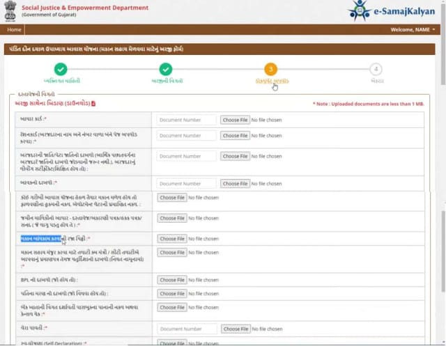 પંડિત દીનદયાળ ઉપાધ્યાય આવાસ યોજના માટે જરૂરી દસ્તાવેજો