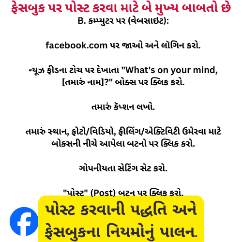 There are two main things to consider when posting on Facebook: the method of posting and compliance with Facebook’s rules.